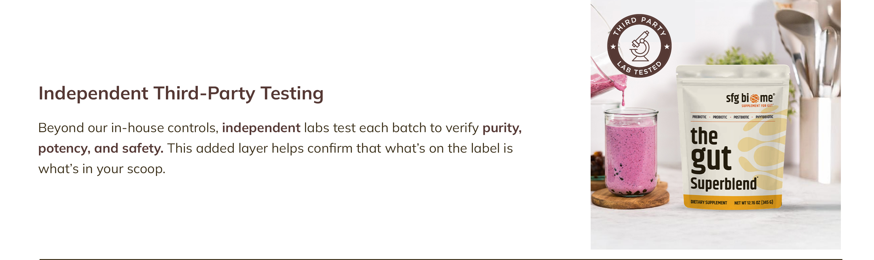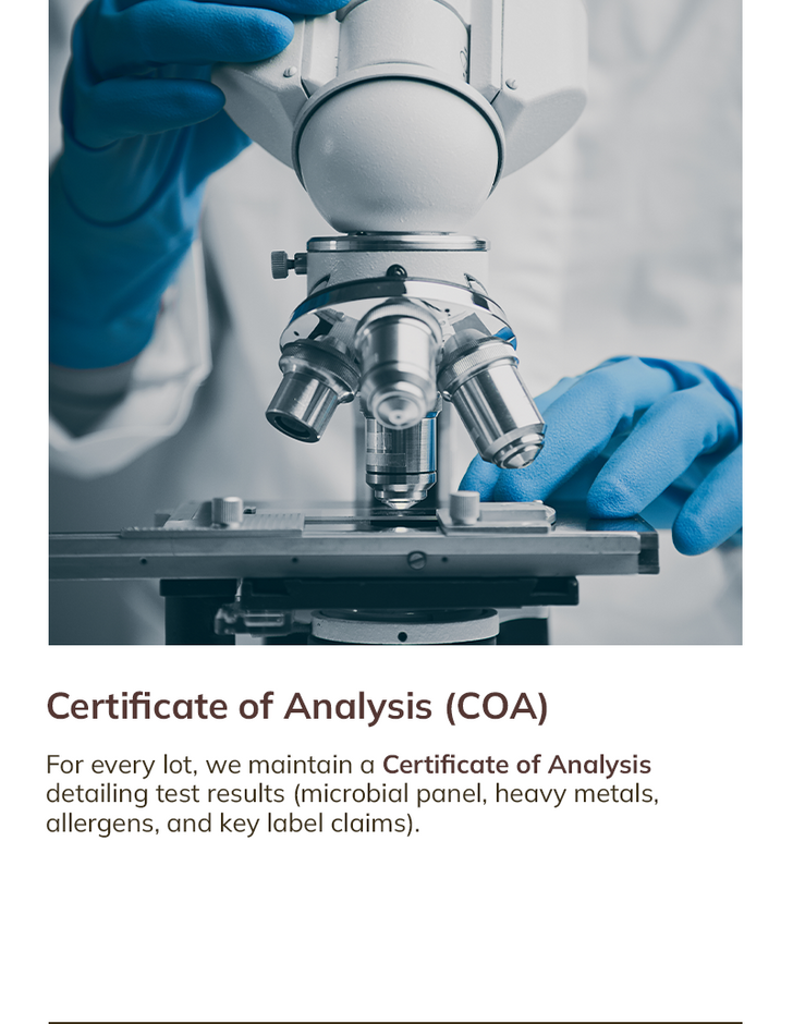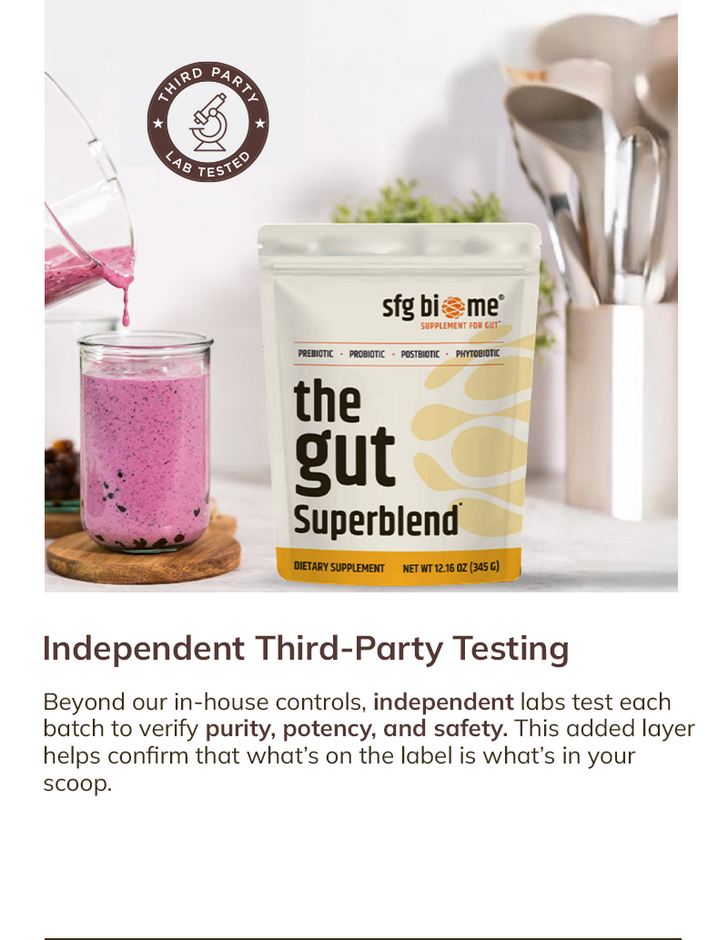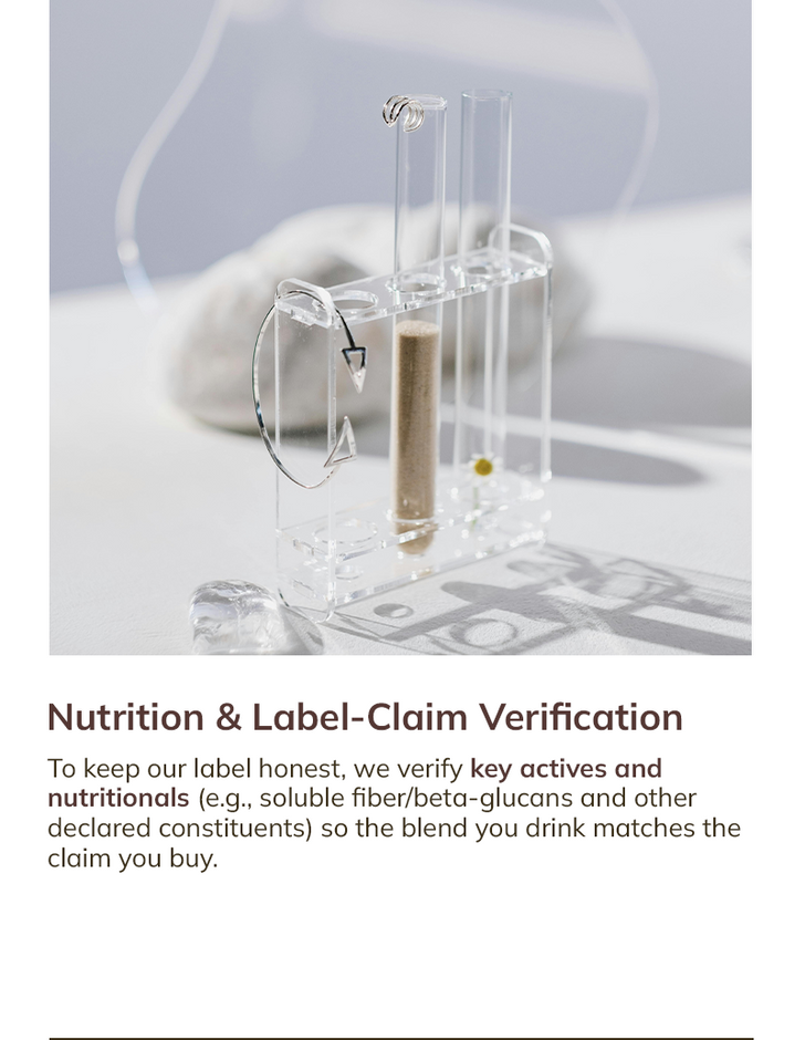 Every batch is tested for identity, purity, safety, and label accuracy - so your daily gut-health ritual stays simple.